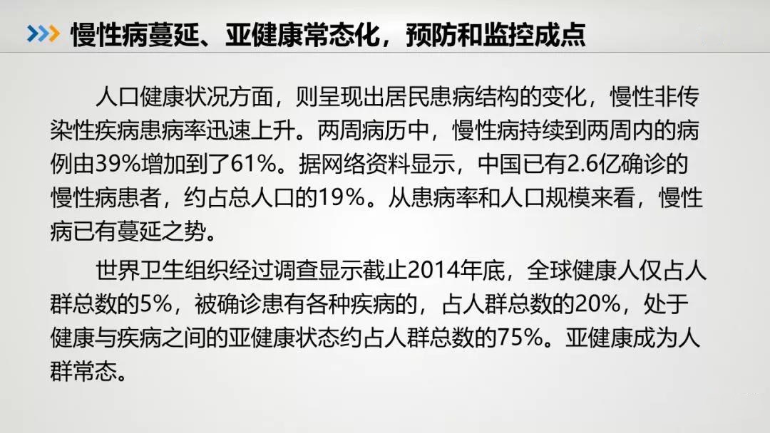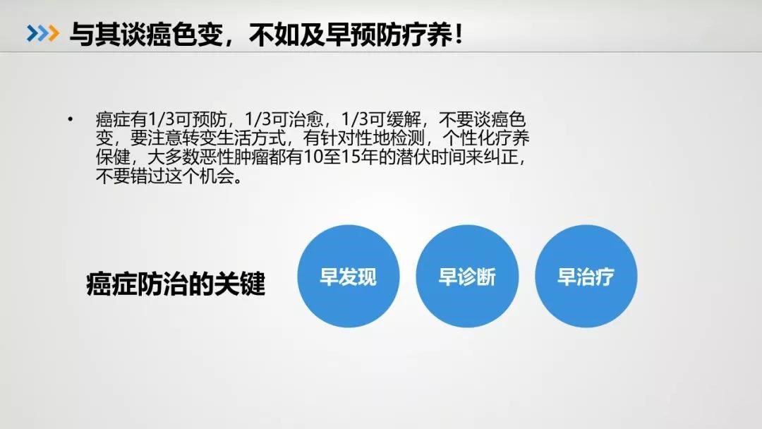 预防大于治疗,中国人和西方人的健康观念有很大差异,我们要真正转变观念,应经常检查,经常维修,加强锻炼,不要等到身体不灵的时候才去医院,那时已晚,一切都会显得苍白无力。