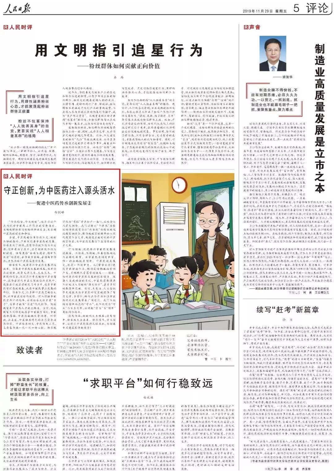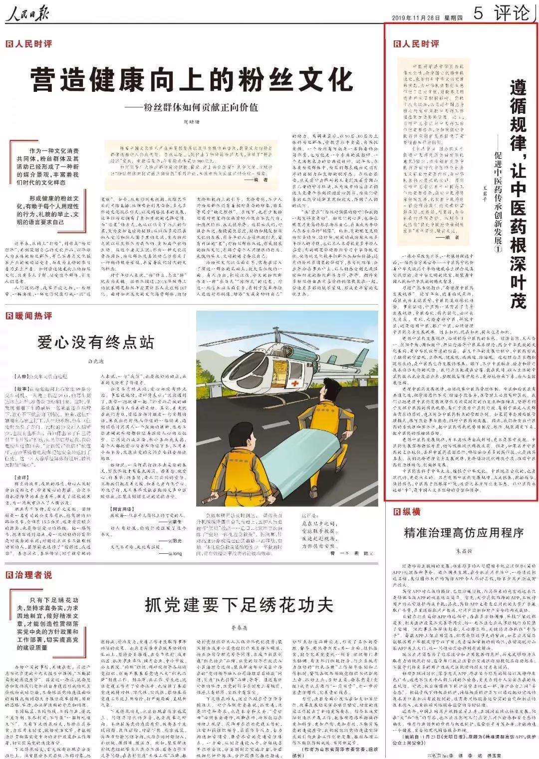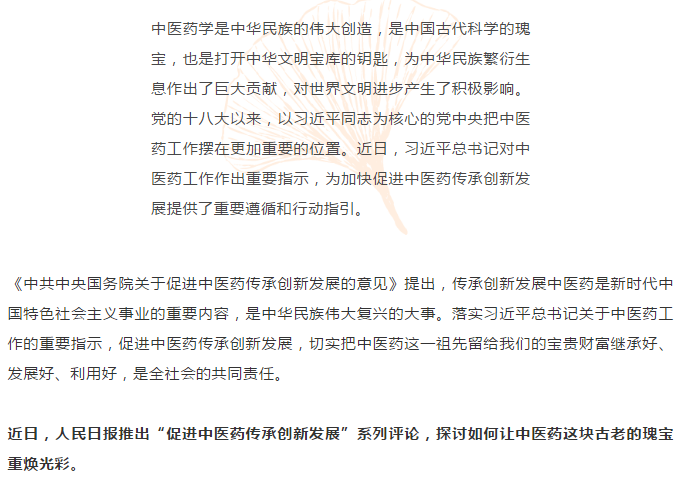 没有传承,创新就失去根基;没有创新,传承就失去未来。传承精华,守正创新,必将让中医药获得无限生机,为健康中国建设提供新动力!