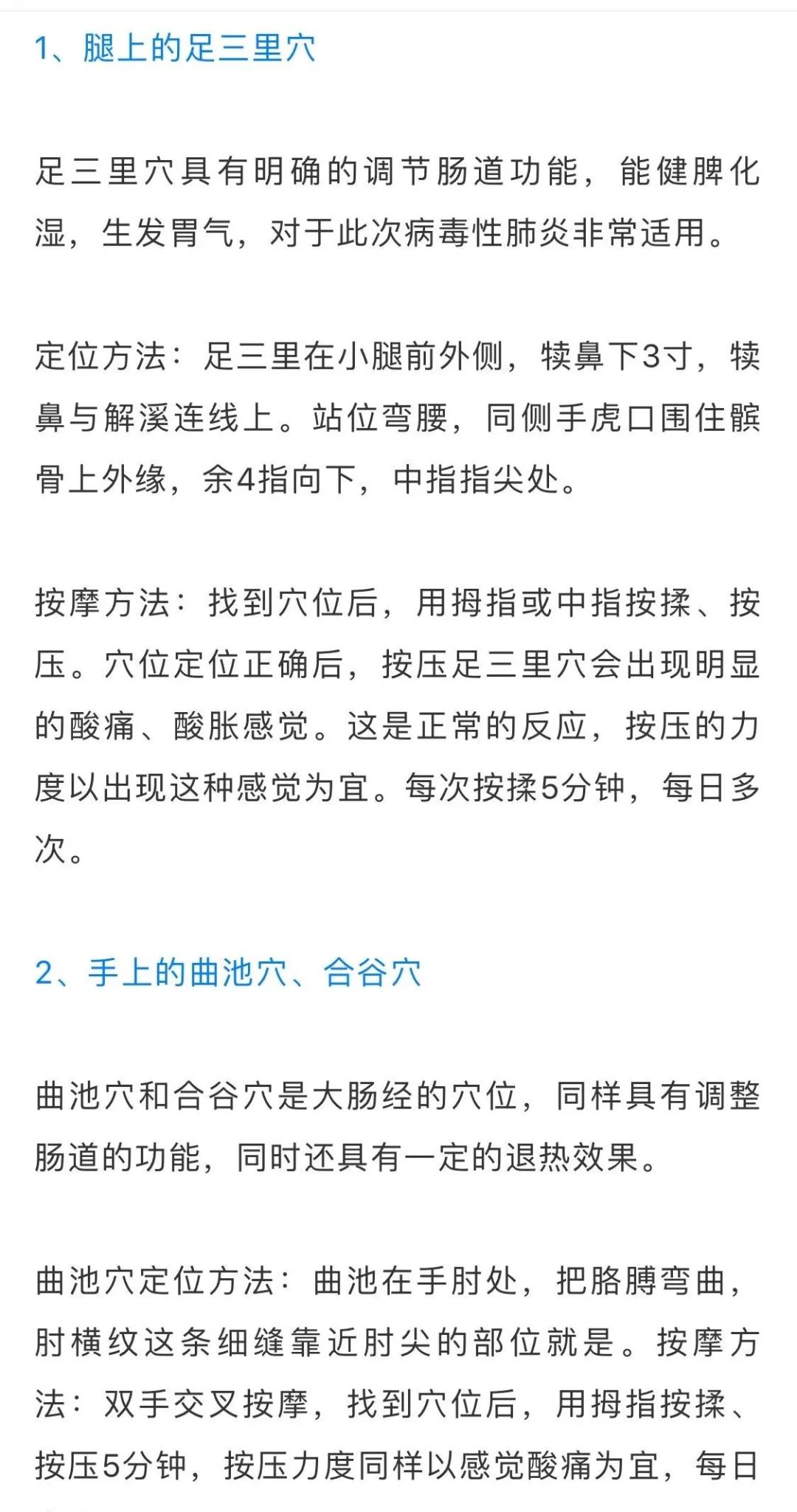 在这次的新型冠状病毒肺炎中,许多患者早期有外感症状,同时胃肠功能受到损伤,表现为胃口差、肚子胀、肚子响,大便稀烂或者大便不通。推荐对一些穴位进行自我保健按摩,改善胃肠功能和外感症状。