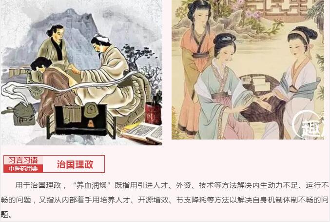 改革势在必行,至于怎么改,总书记引用了四个简短的中医术语——养血润燥,化瘀行血,固本培元,壮筋续骨,将国家比作人体,将治国看成治病,形象生动,极富表现力。“养血润燥,化瘀行血”重在治标,“固本培元,壮筋续骨”重在治本。两者并列结合,表明要标本同治。
