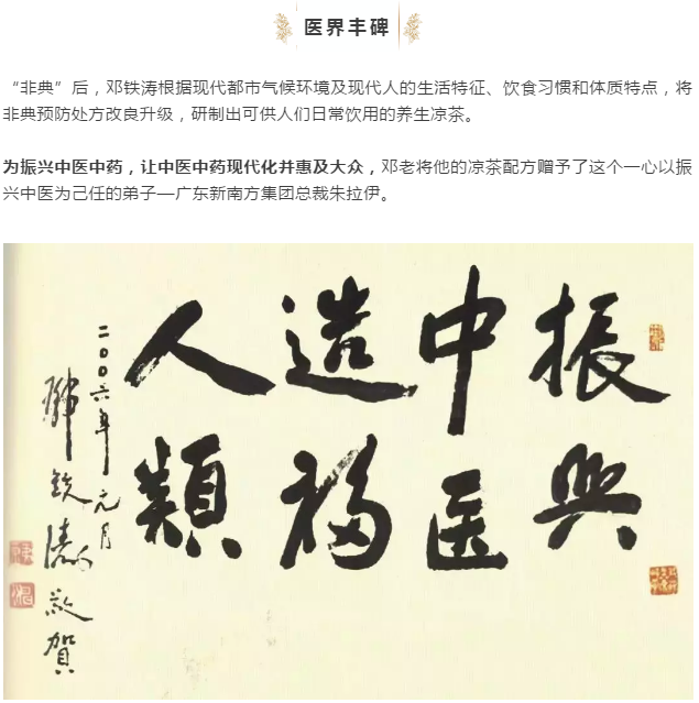 2003年春节,邓老研制出了预防“非典”的凉茶配方。