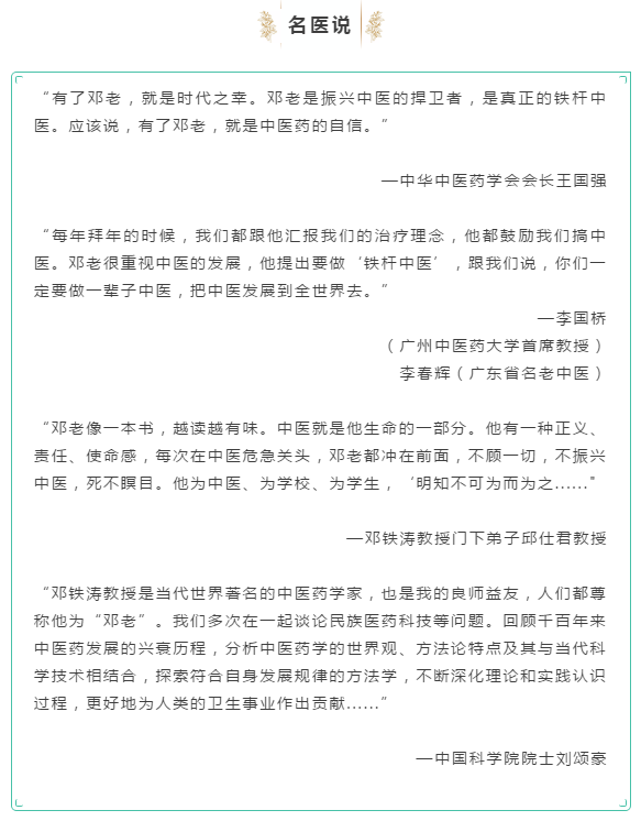 中医泰斗,邓铁涛教授逝世一周年,致此纪念。