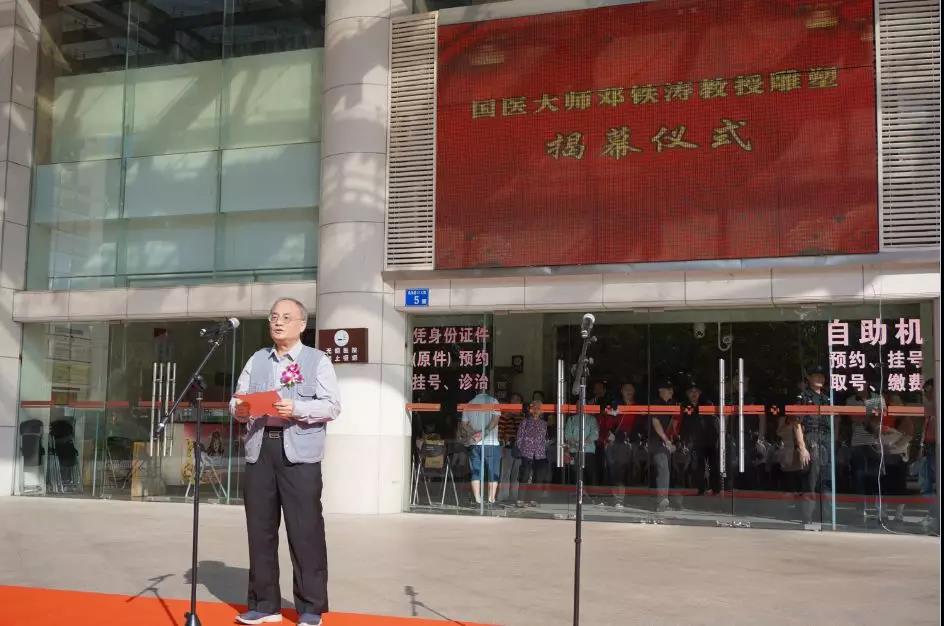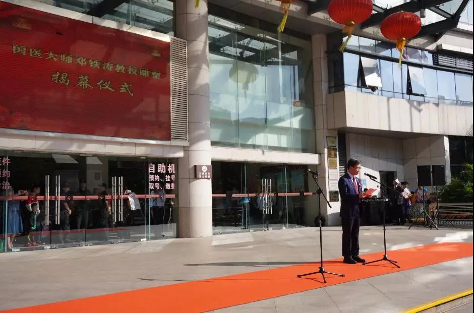广州中医药大学第一附属医院冼绍祥院长致辞,今天邓老雕塑及铜像揭幕,命名“铁涛广场”,寓意“铸就中医魂,丰碑示后人”。