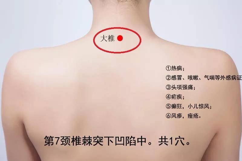大椎穴是人体的一个重要阀门。它是督脉上的穴位,督脉具有统率和督促全身阳经的作用,而手足三阳经都会汇聚到督脉的大椎穴上,所以,大椎穴可以说是我们身体的“阳中之阳”,保护好人体这个“小太阳”,是现在非常好的一个选择。