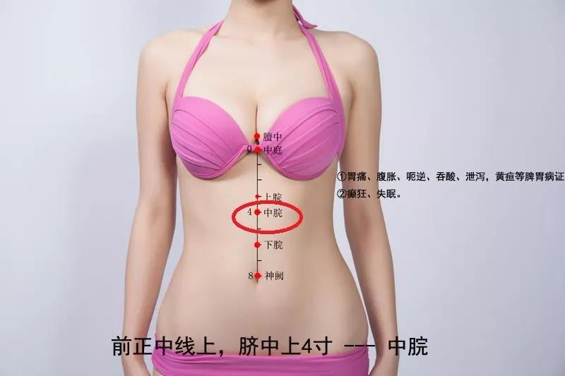 属奇经八脉之任脉。此穴的主治疾病为:消化系统疾病,如腹胀、腹泻、腹痛、腹鸣、吞酸、呕吐、便秘、黄疸等,此外对一般胃病、食欲不振、目眩、耳鸣、青春痘、精力不济、神经衰弱也很有效,此穴位为人体任脉上的主要穴道之一。