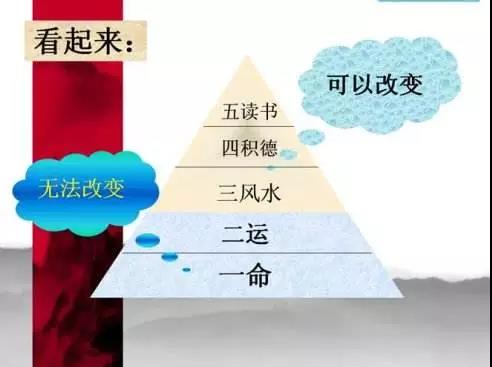人们经常听说这句话: “一命二运三风水,四积阴德五读书”,但是了解这句话意思的人不多。从易经的角度看,它相当明确地指出了一个人的命运是由什么力量决定的,反过来说,理解了这句话,也就掌握了改变命运的钥匙。