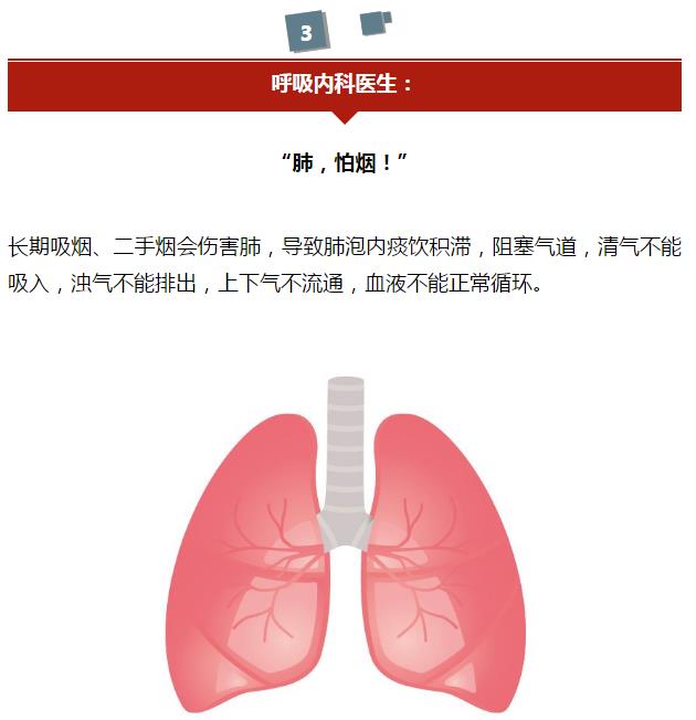 ♥长期吸烟、二手烟会伤害肺,导致肺泡内痰饮积滞,阻塞气道,清气不能吸入,浊气不能排出,上下气不流通,血液不能正常循环。