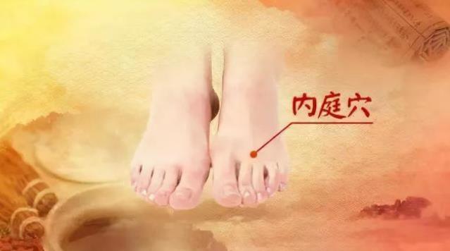 内庭穴在足背侧,第2、3趾间。顺着按摩和逆着按摩有不同效果: