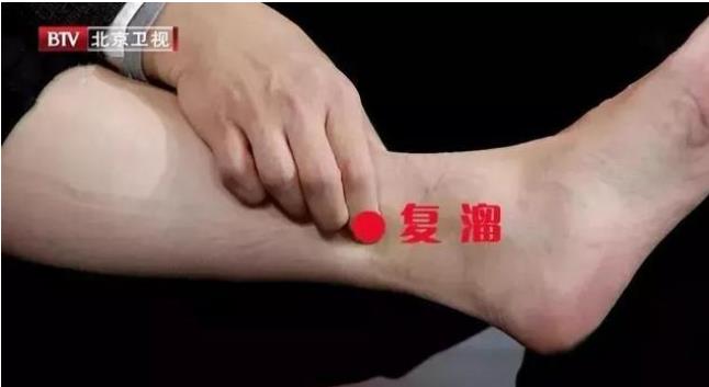 复溜穴位于内踝尖和跟腱后缘之间的中点向上三横指宽的位置。其是足少阴肾经上的穴位,是调节肾经的一个枢纽,专治水液代谢失常,具有补肾滋阴、利水、活血、消肿之功效。