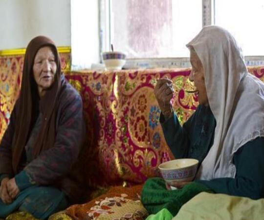 早餐可能就是粥加馒头,午饭可能是米饭加几个小菜,晚饭有时会吃面条,还就着面汤泡软的囊。老人的饮食规律又克制,在其他人看来或许略显单调,但对于一个135岁高龄老人来说,有着好胃口可谓是幸事。阿丽米罕的作息也非常规律,年轻时便遵循着日出而作日落而息的健康原则。五点是老人的吃饭时间,吃完后玩耍一会就上床休息。