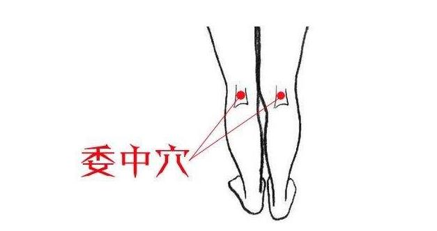 委中穴的位置在腘窝横纹正中线处。取穴时可屈腿,膝关节后侧的腘窝中出现横纹,其横纹的中点处即是委中穴。