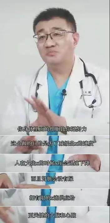 他很清楚地记得那天晚上,他拼命地给病人输血,输凝血物质,给他用升压药物。但是到最后,这个病人的身体还是在不断恶化,情况越来越糟糕,输血输到最后一滴的时候,病人的心律不停在增快,血压越来越低,身体完全失控了!这个时候,医生完全绝望了,甚至他都做好了心理准备。当病人的血压低到六七十的时候,然后突然一下,他身上全部的出血,在一瞬间全部止住了。这个医生后来终于想明白了——这是诱发了身体的保护机制。也就是说,人在大出血的时候,血压会迅速下降,身体这么做的目的就是为了减缓出血的速度,保护身体,然后把有限的血流全部供给更关键的大脑和心脏,去全力指挥抢救。你看我们的身体多么聪明,降低血压,减少出血量,但是又同时保证了大脑和心脏的供血量。然后当血压降低到某一个程度的时候,凝血功能慢慢跟了上来,所以大出血突然就一下子全部止住了,病人成功被救活。在这一场抢救中,医生扮演了非常重要的角色,但真正起到起死回生作用的,还是我们自己的身体。我们经常被教育,在危难的时候要努力,要去克服困难,其实你并不知道,你的身体,你身体里的细胞,比你还要努力。我们人体每天,会有3300亿个细胞死亡,但同时也会有3300亿个细胞新生。在危机时刻,所有的这些细胞都在为你拼命,拼命到最后一刻。这个医生一番发人深省的话,在抖音上获得的点赞有一百多万,播放量达到一千多万,看哭了无数人。在这个视频的评论区有一个留言非常戳心,获得了5.8万的点赞:当你各种放纵的时候,当你各种虐待自己的时候,当你以为全世界没人爱你的时候,却忘记了,你的身体比你更爱你自己。种种医学迹象表明,你的身体比你想象中更加坚强、更爱你自己,只是你不知道而已:1:你可能不知道,孕妇在即将生产的前几天,血液中的凝血指标会升高几十倍,那是防止生产过程中可能会出现的大出血。2:你可能不知道,你每天都有5次得癌症的机会,每人每天会有1到5个细胞发生癌变,可每次都是你体内的其他细胞杀死了癌细胞,是你的身体拯救了你!3:你可能不知道,你的肝脏即使被切掉了三分之二,它也能长回原来的样子,它是人体内唯一可以再生的器官。4:你可能不知道,你的胃液酸性非常强,强到能够把钢制刀片溶解掉。但神奇的是,你的胃也会分泌一种黏液保护自己,让你不会被消化掉。5:你可能不知道,当你的心脏最主要的部分不能跳动的时候,“房室结”会开始替它跳动,而当“房室结”也不能跳动的时候,你心脏的“心室”会开始自主逸搏跳动。这个时候跳动的心电图已经面目全非,惨不忍睹,它的血流也非常微弱,但是即便是这么微弱的血流,也能保证了大脑和心脏的供血,保证你的身体不会死去,等着援兵的到来。6:你可能不知道,在一秒之间,或者你读这句话的时候,你的身体已经制造了100万个红细胞。它们在你周身飞驰,在血管里穿梭,维持你的生命,不停地向你的细胞输送氧气,完成任务后会静静死去....7:你可能不知道,你很难用各种作死的方式杀死自己,比如停止呼吸,比如不闭眼睛,比如自己掐自己。每一次行动的时候,都会诱发身体强大的保护本能,而你无法战胜本能。8:你可能不知道,在你的一生中,你的心脏大约会泵出1.82亿升血液,跳动25亿次。你的眼睛会眨动4.15亿次,流下68.75946升眼泪。你的肺如果摊开,能覆盖一座网球场,肺里的呼吸道能从伦敦延伸到莫斯科。你的每一个细胞中包含着1米多长的DNA,如果你把体内所有的DNA搓成一根细细的线,它能延伸100亿英里,比从地球到冥王星的距离还远。如果从更宏大更宽阔的层面来说:其实你就是你的身体的宇宙。我们人体内的每一个细胞都是互不认识的,它们都在按照自己的本能工作、运动、代谢、死亡。它们很多一生中可能都见不到,但是就是这成百上亿个“各司其职”的细胞加在一起,就组成了你,组成了一个庞大的宇宙。仔细想想一下,我们都曾经是它们的宇宙,我们都是它们唯一信赖并且一直在合作的伙伴,还有什么理由去焦虑、惶恐、自轻自贱呢?其实说了那么多,无非就是想告诉你一个道理:你的身体那么爱你,我们也要好好回馈它们。更多的时候我们要学会“向内求”,去探索我们的身体,触达内心最深处,学会真正爱自己。人在濒临死亡的时候,大脑发出最后一道指令,把最后那5%的肾上腺素全部分配给神经系统和声带肌肉,交代后事,并且大脑最后一次向其他器官告别....很多人觉得自己很平凡很普通,甚至还调侃自己是屌丝,可是你想象不到,你的身体竟然是由这么精密和优秀的团队组成的,它们是世界上最爱你、也是唯一忠诚你的伙伴。当我们开始珍惜我们的身体,学会倾听并平等和身体对话,真正学会去爱它们的时候,那么你就能从最深的层次开始治愈我们的生命。是的,在很多时候我们的身体都是拼命地救我们,但是也请你记住,它们也会有能力不及的时候。当你一杯杯高热量的奶茶往肚子里“吨吨”的时候,当你一餐餐重口味的食物往胃里面塞的时候,当你凌晨一点依然忍不住刷短视频熬夜的时候,当你不吃早餐一顿顿宵夜HIGH到爆的时候....是的,你的身体是会向你发出警报,但是你一直在无视,一直去放纵自己的话,那么就会发生悲剧。27岁的小伙因喜欢暴饮暴食,缺少运动,最后变成肥胖、高脂血症,后来在一次意外后突发脑梗死。江苏28岁的年轻姑娘,因体重太过肥胖,患上了尿毒症,本应